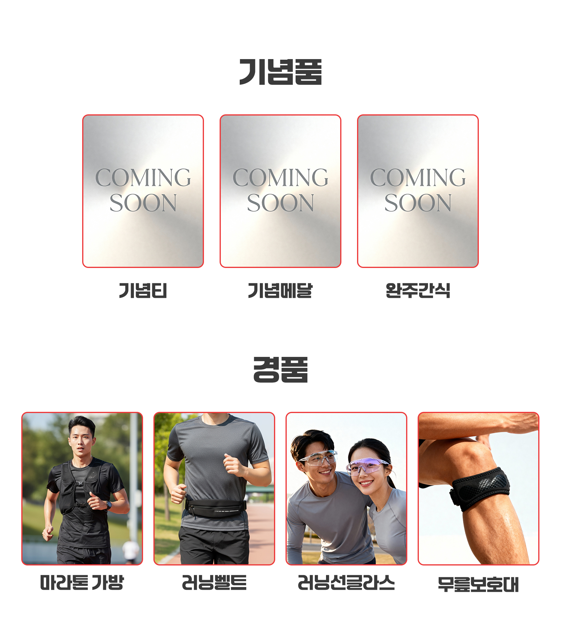 [ 기념티셔츠, 완주메달, 기록증(하프/10km), 간식(빵,음료수) ]